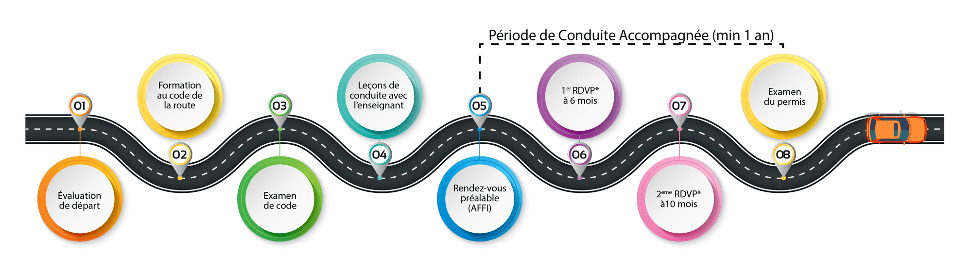 La conduite accompagnée permet d’apprendre dès 15 ans avec un accompagnateur : l’objectif est de gagner en expérience, en confiance et d’arriver à l’examen mieux préparé.